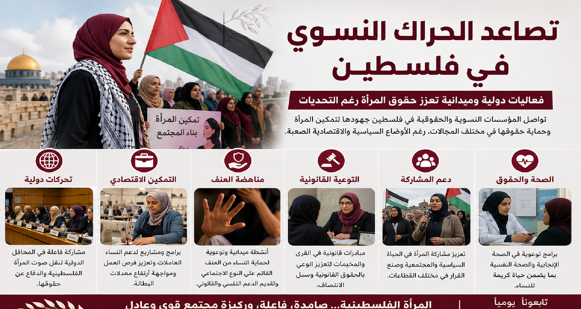 تشهد الساحة الفلسطينية في الآونة الأخيرة تصاعدًا ملحوظًا في نشاط المؤسسات النسوية والحقوقية، في ظل استمرار التحديات السياسية والاقتصادية التي تؤثر بشكل مباشر على واقع المرأة الفلسطينية.