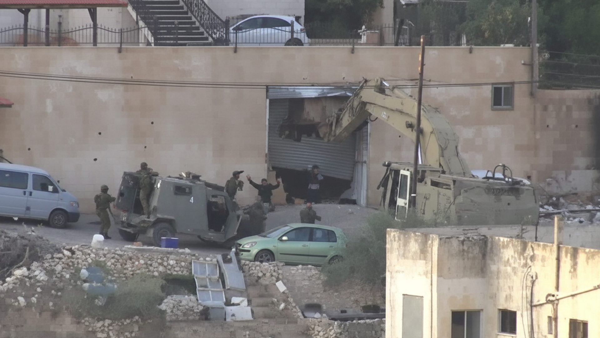 كما أقدمت جرافة عسكرية على هدم باب أحد المخازن التابعة لأحد المنازل في الحي، ليُجبر الشابان على الخروج منه تحت تهديد السلاح، قبل أن يتم إطلاق النار عليهما بشكل مباشر، ما أدى إلى استشهادهما على الفور.